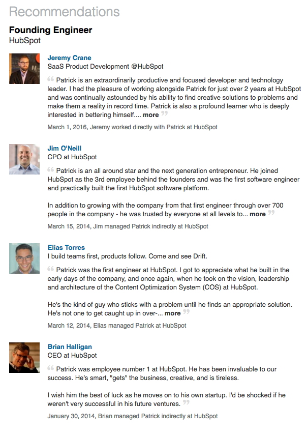 LinkedIn Recommendations for Patrick